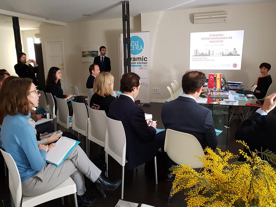 80 milyon nüfusa ve genç ve kalifiye iş gücüne sahip olan Türkiye, jeopolijik konumunun da getirdiği avantaj ile Avrupa, Avrasya, Yakın Doğu ve Kuzey Afrika ülkelerinin bulunduğu, 1.6 milyar tüketiciyi içeren bir pazarın kapısı konumunda olduğu vurgulandı. Aralarında DEİK Türkiye-İspanya İş Konseyi Başkanı, Sn. Zeynep Bodur Okyay, Türkiye İhracatçılar Meclisi Yönetim Kurulu Üyesi Sn. Murat Akyüz, İstanbul Ticaret Odası Başkanı Sn. İbrahim Çağlar, Adana Sanayi Odası Başkanı Sn. Zeki Kıvanç’ın da bulunduğu Türk iş heyeti ,Türkiye ve İspanya’nın Akdeniz kültürüne sahip olduğuna değinerek, iki ülke arasındaki ticari bağlantıları da güçlendirmeye çağrı yaptı.