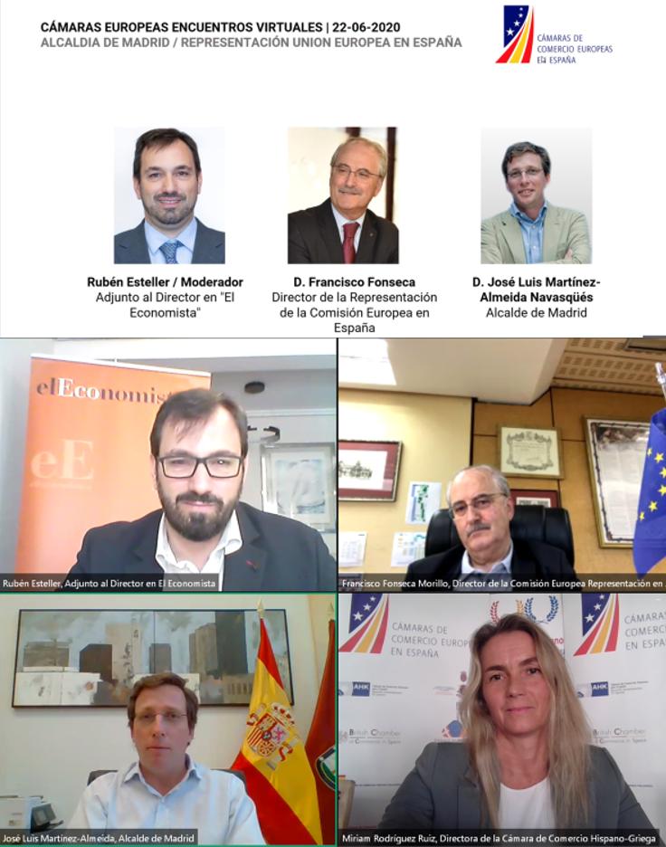 22 Haziran tarihinde İspanya’daki Avrupa Ticaret Odaları’nın düzenlemiş olduğu sanal toplantısına Kardeş Oda sıfatıyla katılımda bulunduk. Madrid Belediye Başkanı Sn. José Luis Martínez-Almeida Navasqüés ve Avrupa Komisyonu İspanya Temsilciliğini üstlenen Sn. Francisco Fonseca sunumda bulundular.