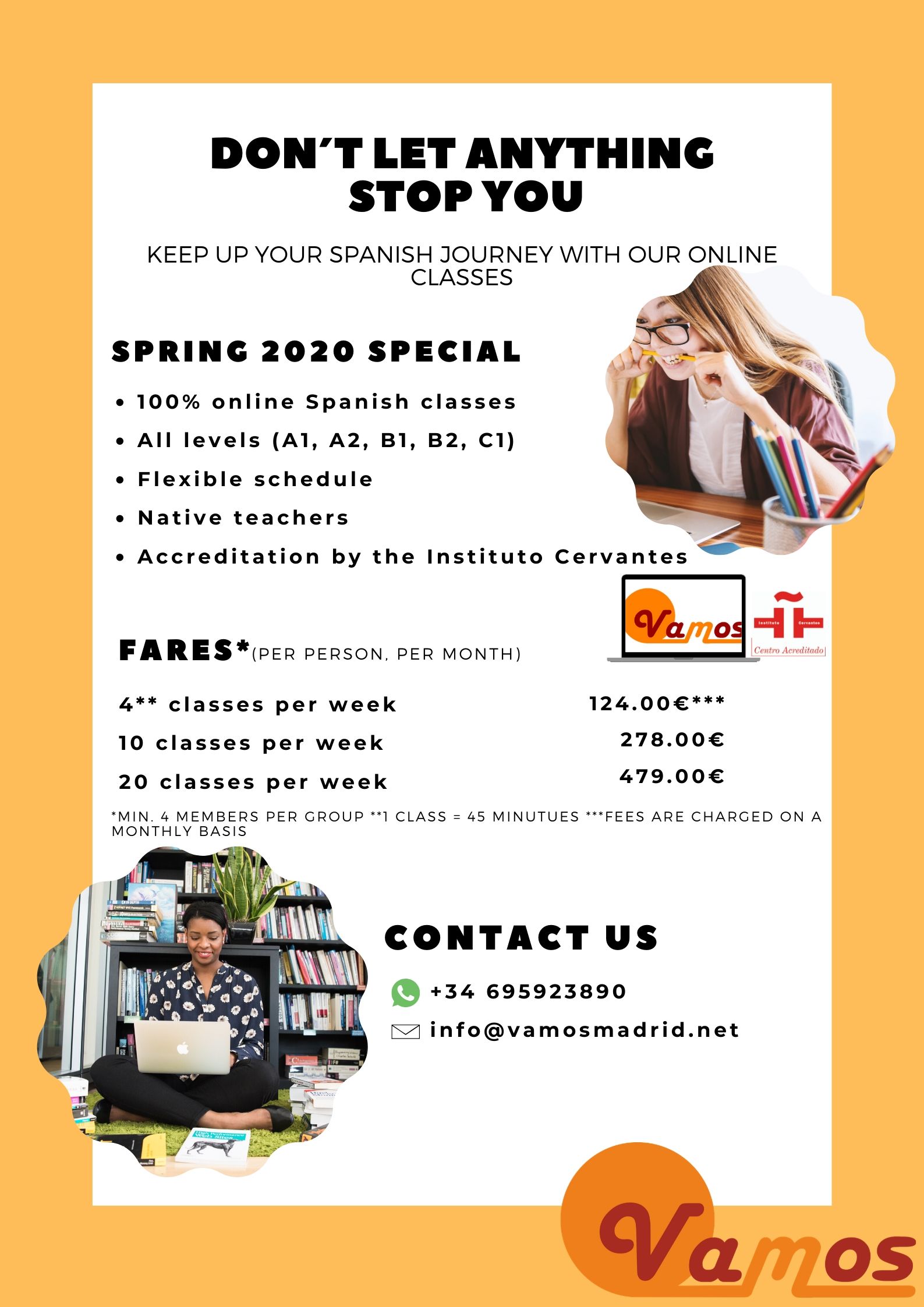 İstediğiniz zaman ve istediğiniz yerde İspanyolca öğrenmek veya dilinizi geliştirmek için VAMOS Madrid sizler için iyi bir fırsat olacaktır.