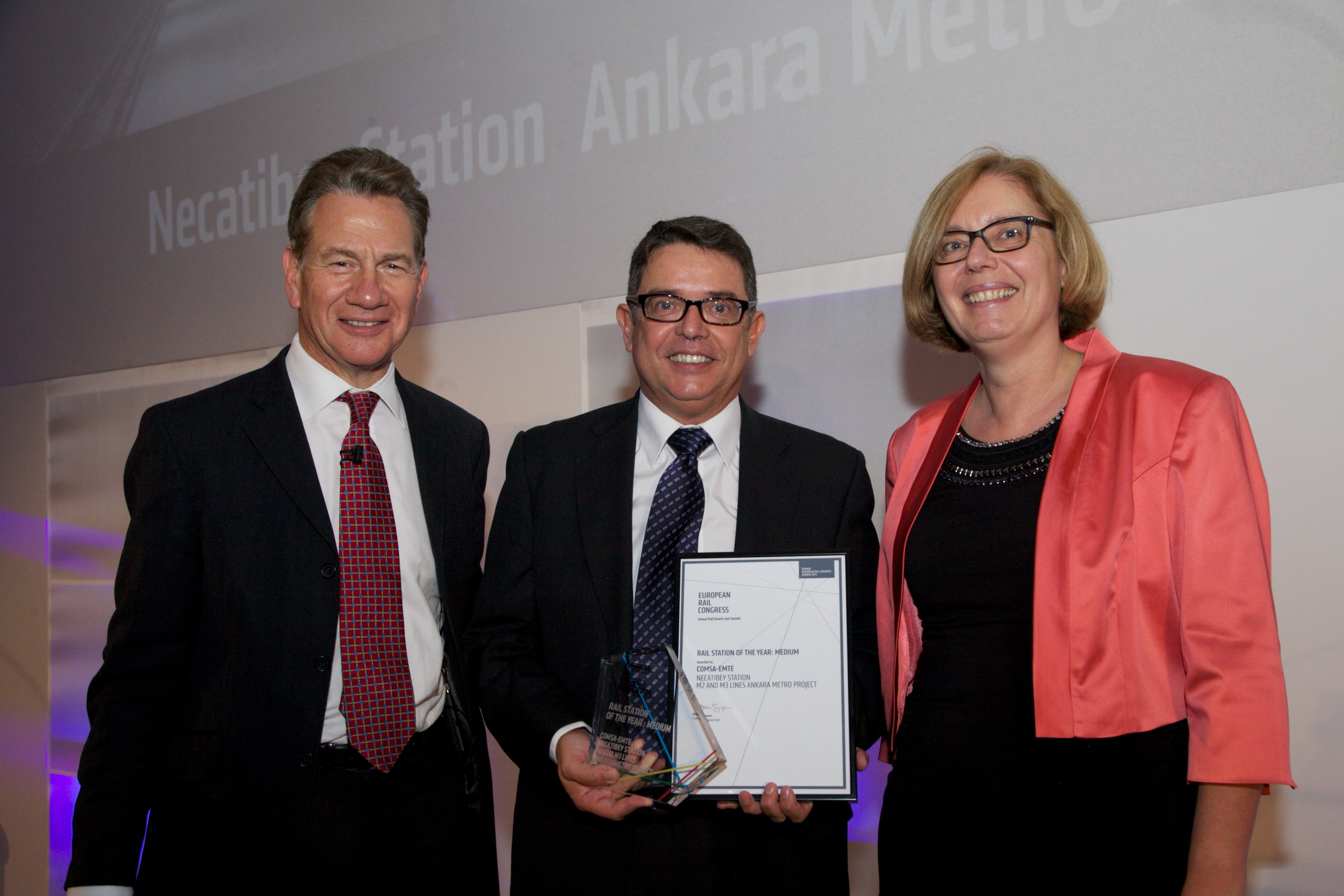 COMSA, la empresa constructora del grupo COMSA EMTE, ha sido galardonada por sus trabajos en el metro de Ankara (Turquía) en la segunda edición de los premios European Rail Congress, un evento que se celebra anualmente en el Reino Unido y que reúne a los principales actores de la industria ferroviaria. En concreto, la organización ha otorgado a la empresa el premio a la Mejor Estación Ferroviaria de tamaño medio en Europa, por la construcción de la estación de Necatibey, de la línea M2 del suburbano turco.
